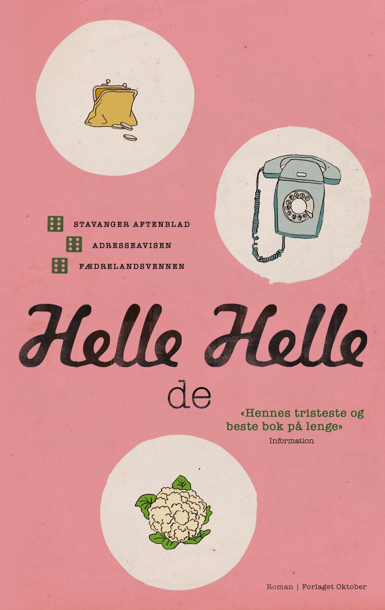 «Mengden av innbo holdes naturlig nede, moren hennes kasserer med hard hånd, det er døde ting. Hun har en remse med alle adressene, moren stikker fingrene i ørene, tørkleet faller fram i pannen. Det er rødt og blått og hvitt. Det er fra Sans Souci, det overlever.» I en provinsby på Lolland begynner en seksten år gammel jente på gymnaset. Moren hennes skulle egentlig ha vært på arbeid i forretningen på torget. Og datteren skulle egentlig ha vinket til moren på vei til bussen om morgenen. Men dette året er ingenting som det egentlig skal være. «de» er en skildring av et mor-datter-forhold. Det er en fortelling om sykdom og kjærlighet og om å gå på gymnaset på åttitallet. Om ønsket om å kunne formulere seg i lengre setninger. Og det er en fortelling om å holde fast, og å slippe når man må. Med humor og alvor og dirrende ømhet skriver Helle Helle fram et portrett av en ung jente på vei inn i voksenlivet.