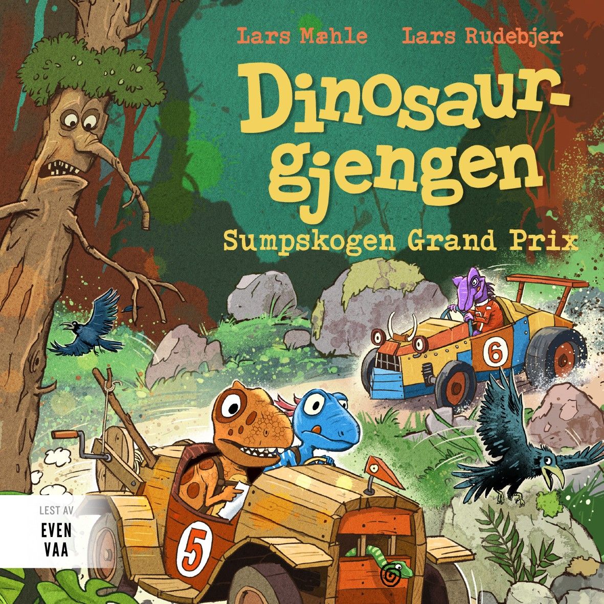 Det er klart for årets store billøp i Sumpskogen. Og i år får også Rasmus og Trym være med. Men kan de slå fjorårets vinner Freddy Fukuiraptor? Og hvordan virker egentlig turbo-strikkmotoren til Morfar Troodon?