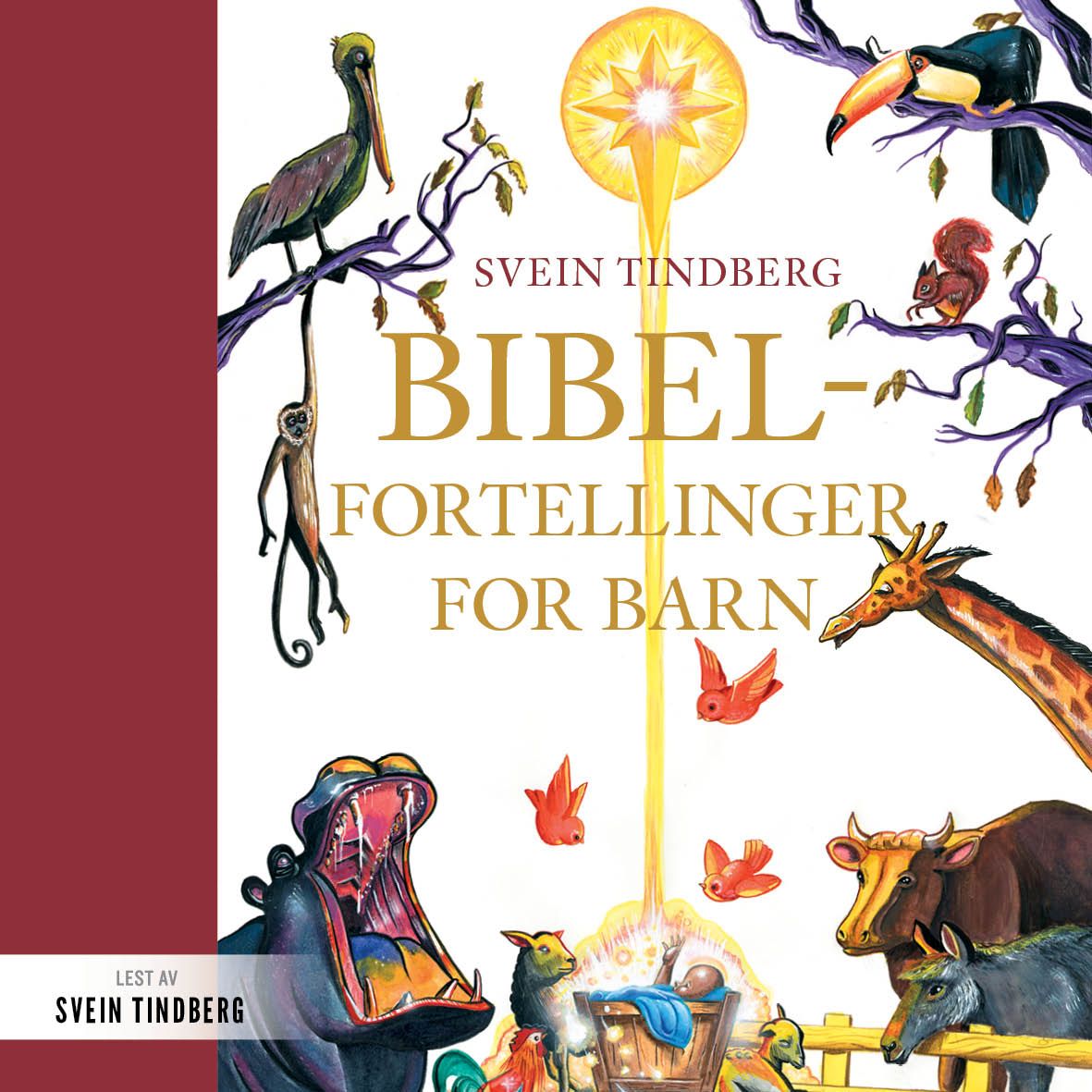 Bibelen for nye generasjoner. Gjennom flere tiår har Svein Tindberg hatt stor suksess med å gjenfortelle Bibelen til voksne. Nå har han blitt bestefar, og da har det vokst frem et ønske om å formidle disse kjente og kjære historiene også til barn. Tindberg bruker sin kunnskap, fantasi og humor til å gjøre fortellingene levende. Her finner du historiene om skapelsen, om Josef og hans søster Dina, om David og Goliat, om jenta som ble vekket opp fra de døde, om Jesus som metter 5000, og mange flere - fortalt på barns premisser, men med stor respekt for de bibelske tekstene. Dette er et familieprosjekt, med utgangspunkt i hvordan Svein Tindberg fortalte historiene til sine sønner da de var små. Den eldste, Magnus, har illustrert denne boka, mens den yngste, Peter, har laget melodiene til sangene i boka. Boka har 17 helt nye sanger og to små skuespill - et julespill og et om Babels tårn.