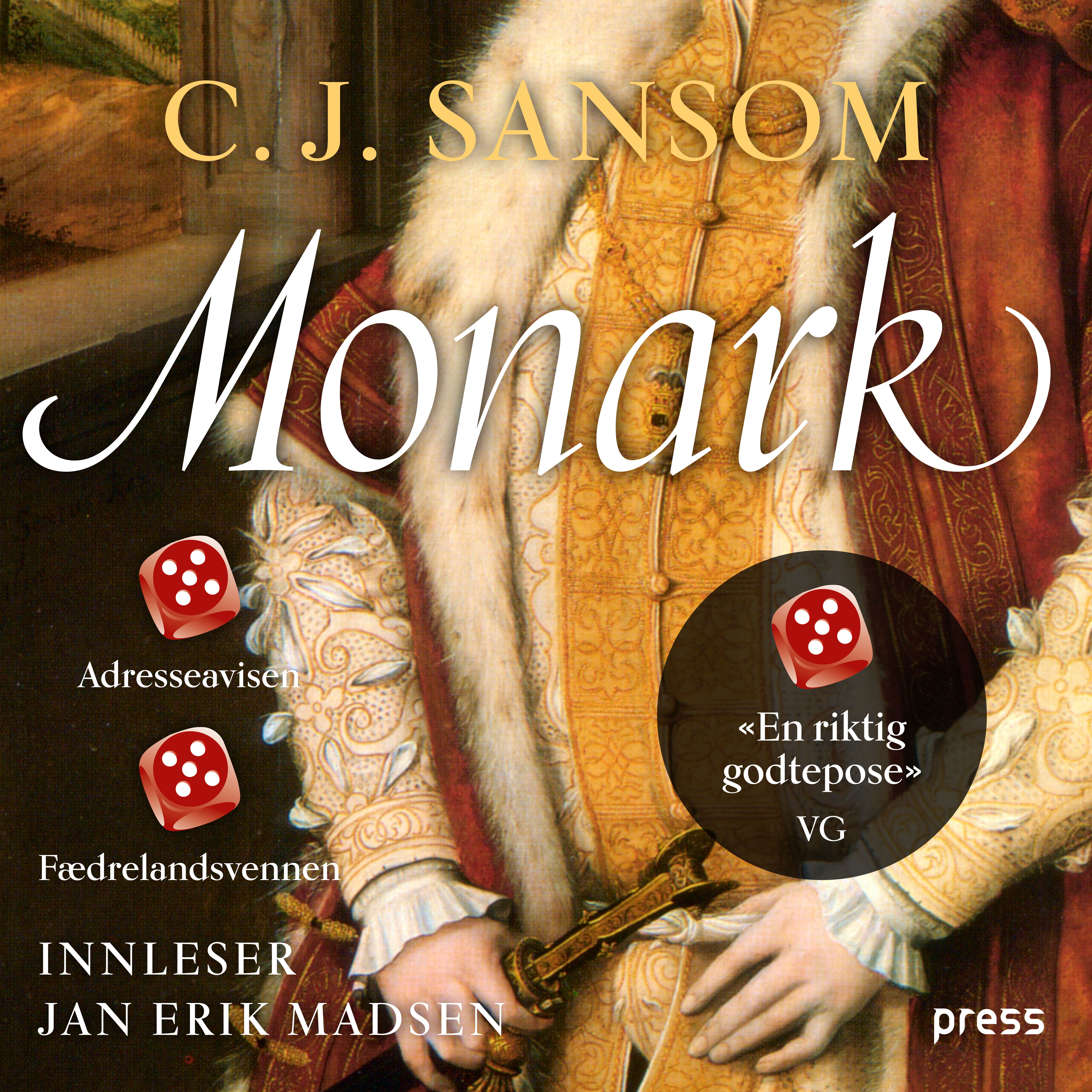 Den britiske historikeren og forfatteren C.J. Sansom har i løpet av noen få år rukket å bli en av Norges mestselgende oversatte forfattere. Monark er bok nummer tre i serien om advokaten Matthew Shardlake, der handlingen er lagt til London i 1540-årene. Serien har blitt en stor internasjonal suksess, og det var i særlig grad Monark som brakte Sansom til toppen av listene i England. Dette er historisk krim i ordets rette forstand, skrevet med en professors kunnskaper og med romanforfatterens lette penn. Sommeren 1541 blir et komplott mot den britiske tronen avslørt, og Henrik 8. legger ut på en spektakulær ferd fra London til York. Shardlake og hans assistent, Jack Barack, er allerede på plass i York. Mens de venter på Kongens ankomst, blir en lokal glassmester myrdet, og saken blir raskt delikat da den synes å ha forbindelser til kongefamilien selv ... Dette er så medrivende at du nærmest fysisk må skilles fra boken for ikke å sitte pal til siste side. Sunday Times