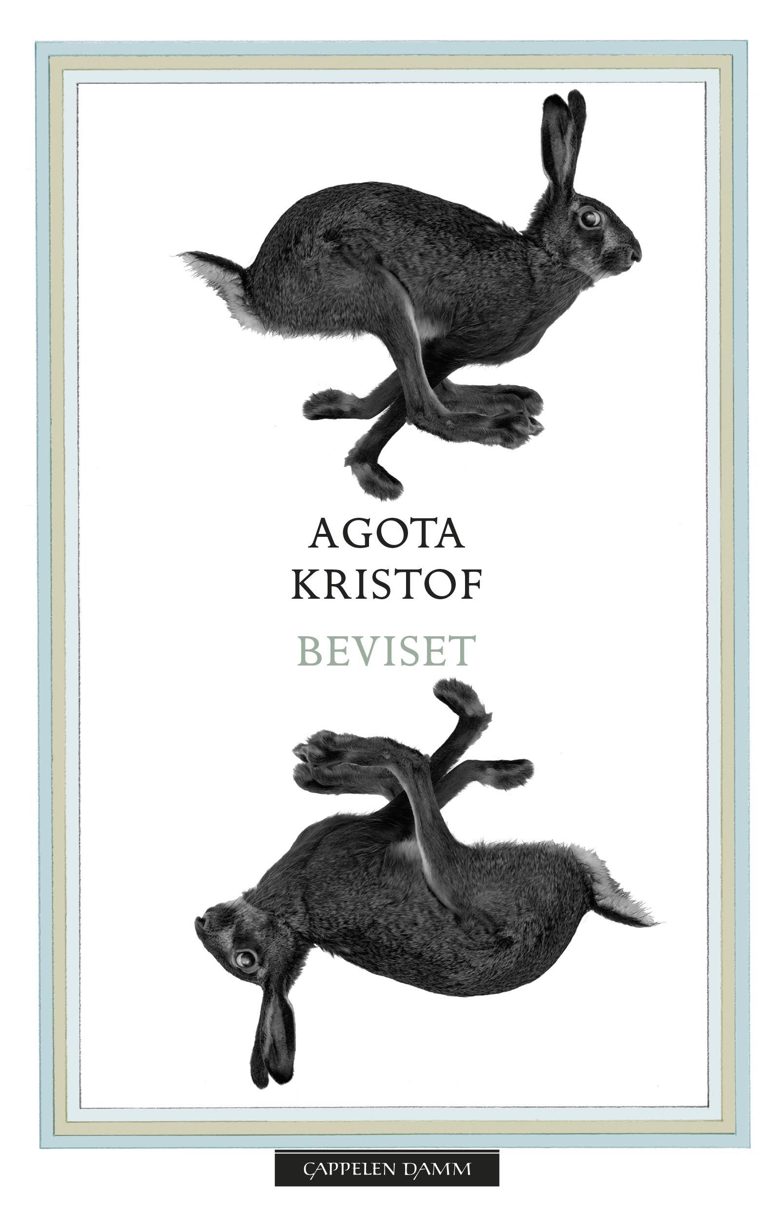 Etter tvillingbrorens forsvinning over grensen er Lucas alene, forvirret og fra-revet en del av seg selv. Han forsøker å gjøre det gode i et land der det onde har tatt styringen, og der menneskene slåss med traumene etter krigen. Det eneste som vitner om livet med broren, er historiene som er nedskrevet i den store skriveboken. Beviset er en roman om atskillelse, følger av krig og å leve i et samfunn der løgnen blir satt i system. Den er andre bok i Agota Kristofs romantrilogi, en moderne klassiker i europeisk litteratur. «Det finnes romaner som forandrer leserens perspektiv, som treffer leseren med en kraft helt utenom det vanlige. Sånn er Agota Kristofs bøker; preget av en slags rå og uovertruffen magi.» Hanna Nordenhök, Expressen