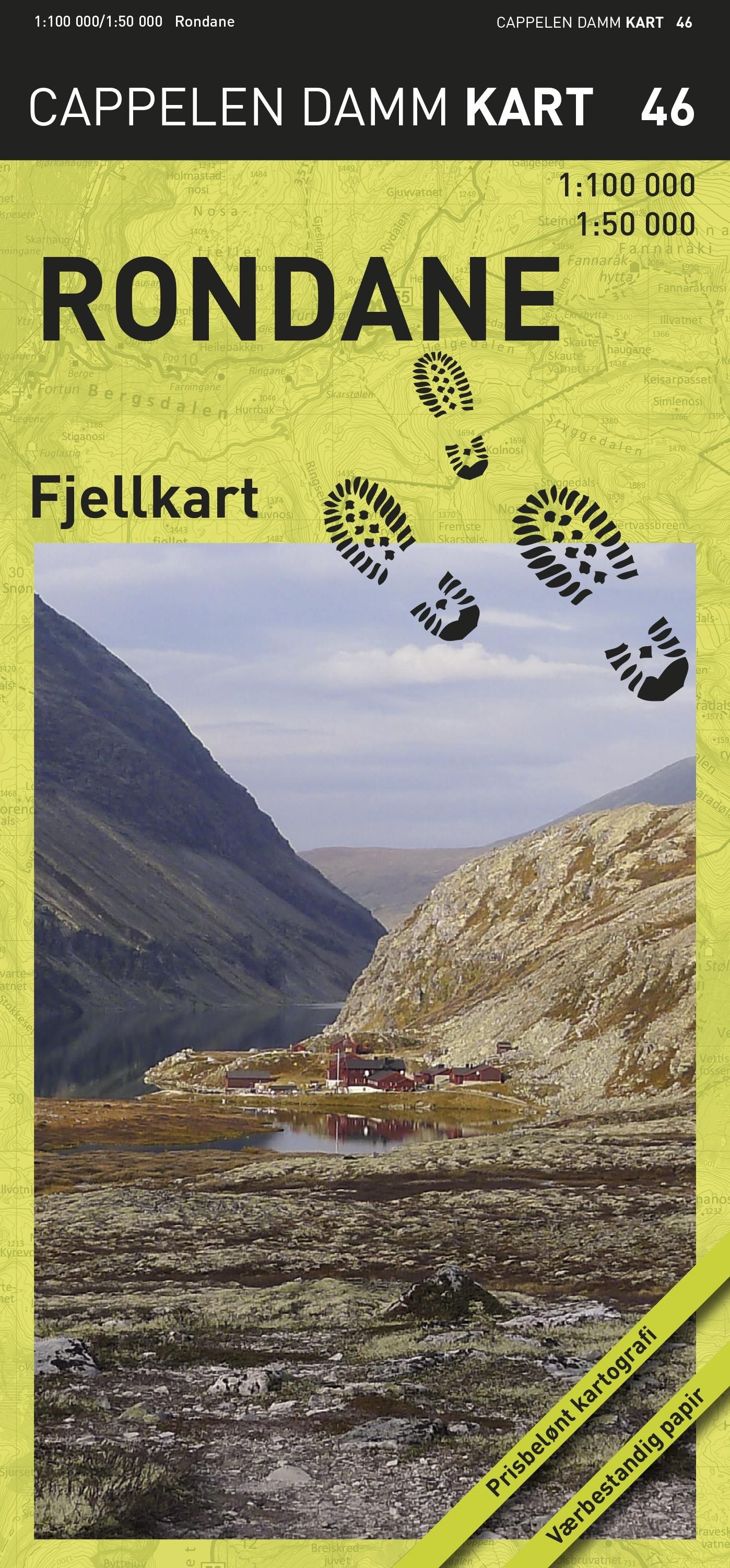 Første utgave av det nye Rondanekartet med 1:100 000 kart på den ene siden og 1:50 000 kart over de mest alpine områdene på den andre siden. Sistnevnte er best til orientering i ulendt terreng. Kartet har fått fornyet utseende. Ny fjellskygge gir bedre inntrykk av terrengets former. DNTs kvistaruter er inntegnet og gjør kartet godt egnet til vinterbruk. Kartet er trykket på værbestandig papir.